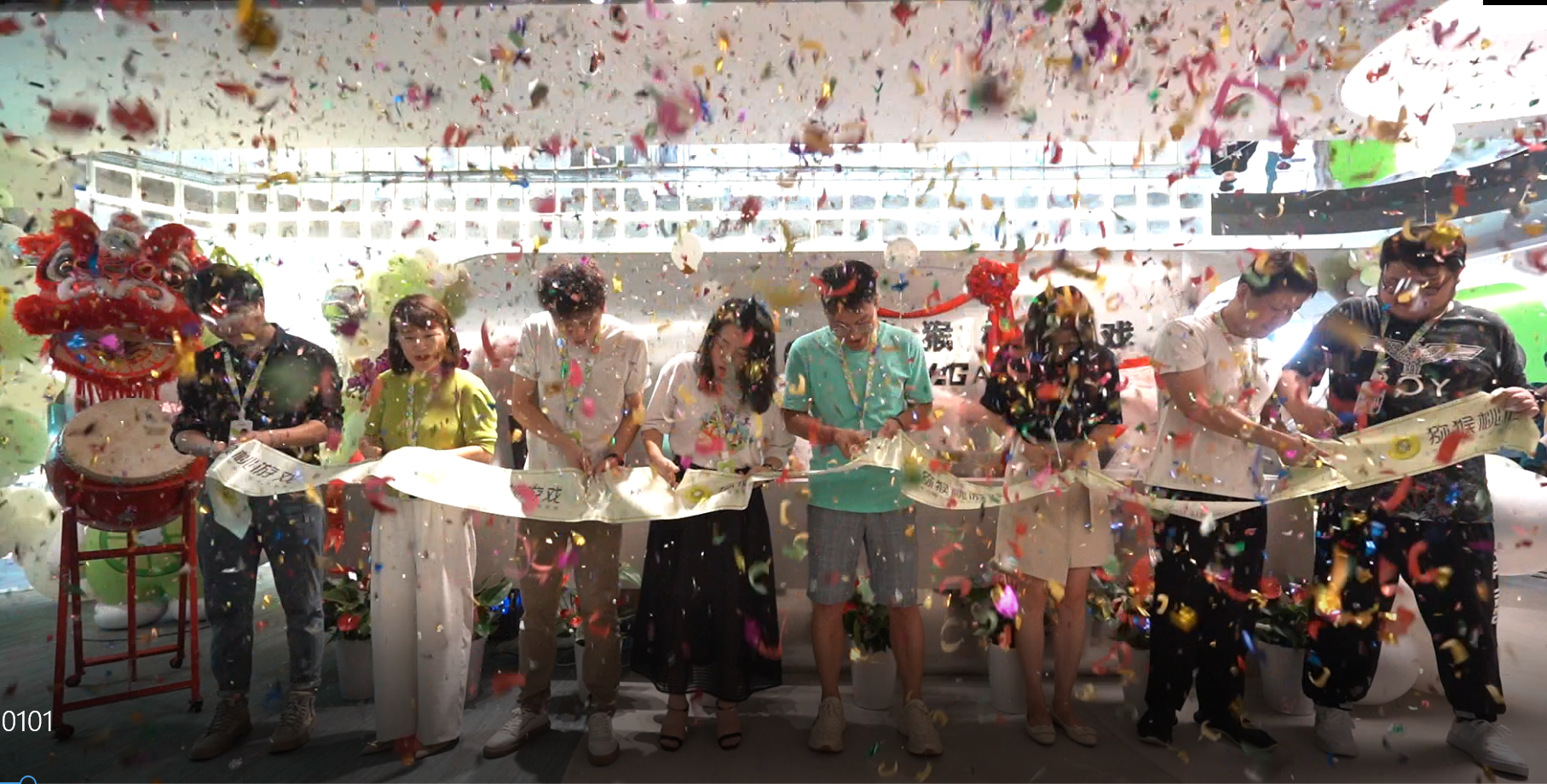 在欢呼声中,典礼迎来了高潮!公司管理层共同进行了乔迁剪彩仪式!